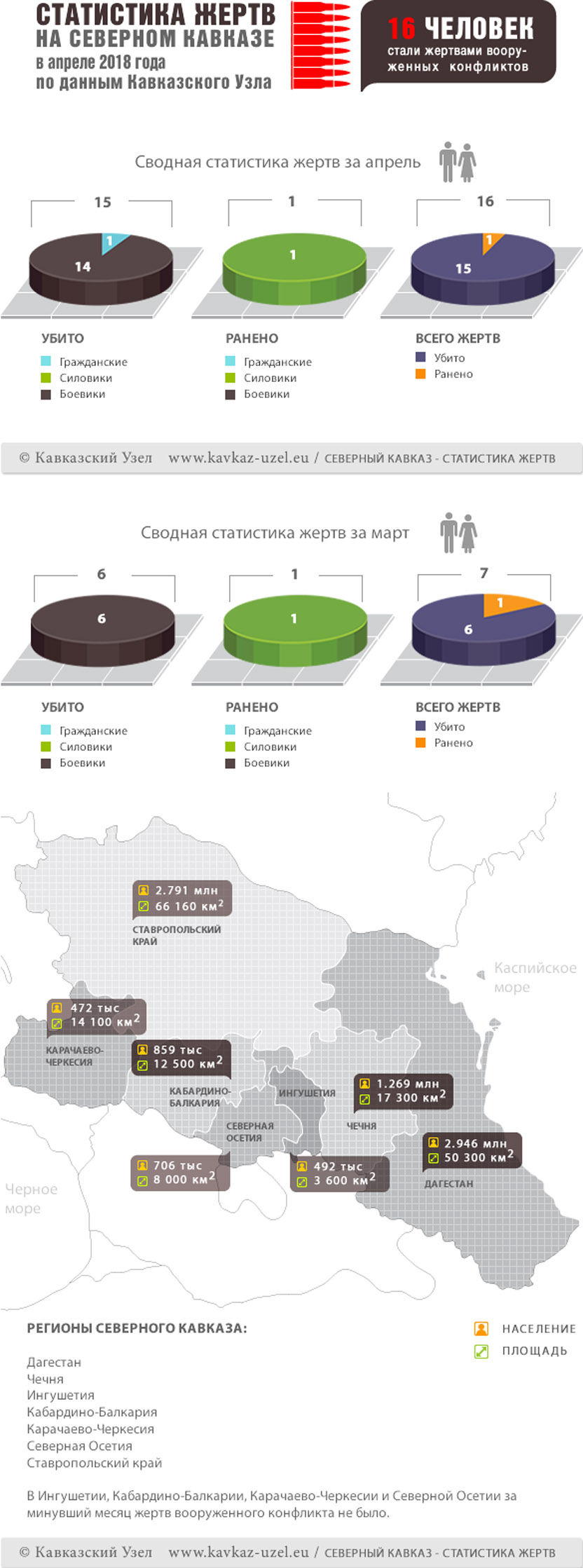 Инфографика. Статистика жертв на Северном Кавказе в апреле 2018 года по данным Кавказского Узла