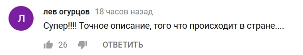 "Супер!!!! Точное описание, того что происходит в стране...", - написал пользователь с ником лев огурцов.