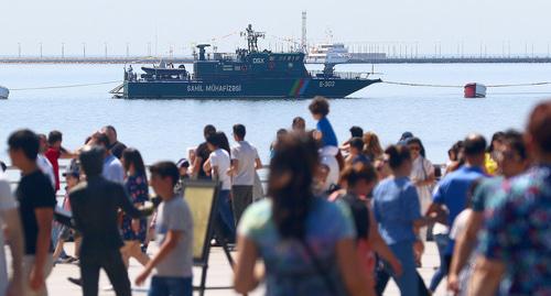 В Бакинской бухте выстроились корабли ВМС Азербайджана и катера береговой охраны Пограничных войск. Авиация была представлена американскими вертолетами Bell-412, российскими МИ-24, Ми-24G, Ми-35M, КА-17, МИ-8 и самолетами СУ-25, МИГ-29. Военные самолеты продемонстрировали фигуры высшего пилотажа.