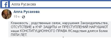 Как информировал "Кавказский узел", 30-летний Денис Тимченко скончался в больнице 28 января 2013 года, по версии следствия, в результате врачебной ошибки. Четверо врачей, которым было предъявлено обвинение в причинении смерти по неосторожности вследствие ненадлежащего исполнения профессиональных обязанностей, вину не признали. По словам Русаковой, в июне 2017 года суд вернул дело прокурору. 30 мая она приковала себя цепями к воротам больницы в Черкесске, требуя возобновить расследование дела.