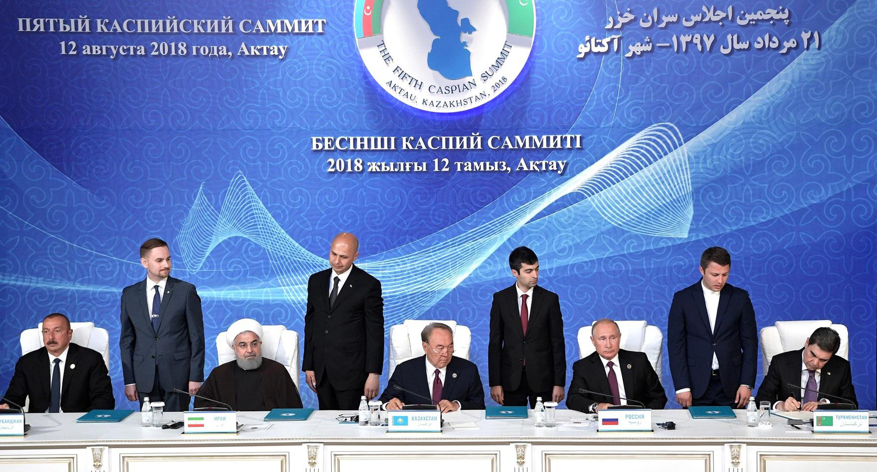 Под конвенцией подписались президент России Владимир Путин, азербайджанский лидер Ильхам Алиев, глава Туркмении Гурбангулы Бердымухамедов, главы Казахстана - Нурсултан Назарбаев и Ирана - Хасан Роухани.