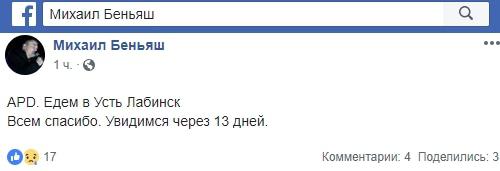 Сам Михаил Беньяш подтвердил информацию об аресте на своей странице в социальной сети Facebook.