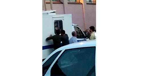 На второй записи продолжительностью 48 секунд десятки молодых мужчин стоят у проезда, из которого выезжает автозак. Осужденные смотрят из окошка автозака на улицу, несколько мужчин с криками бегут за автозаком, стуча кулаками по кузову автомобиля и окошку.