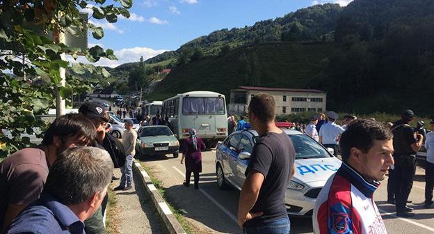 "Состоялся разговор, в ходе которых местные жители объяснили конникам, что они против такого похода. Однако всадники сегодня в сопровождении силовиков отправились в поход", - пояснил источник, уточнив, что, по состоянию на 14 мск 18 сентября, участники похода были заблокированы в Кенделене, а дорога к селению была перекрыта.