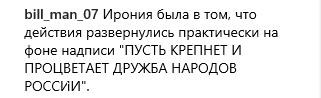 "Ирония была в том, что действия развернулись практически на фоне надписи "Пусть крепнет и процветает дружба народов России", - заметил bill_man_07.