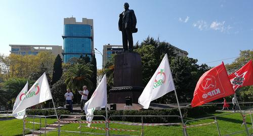 Лидер местного отделения КПРФ Сергей Хамлов подтвердил корреспонденту "Кавказского узла" отказ представителям других партий и движений принести на митинг свои флаги и говорить с трибуны.