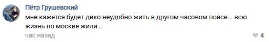 "Мне кажется, будет дико неудобно жить в другом часовом поясе... всю жизнь по Москве жили", - написал Пётр Грушевский.