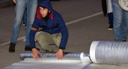 Протестующие против ратификации Соглашения о границе Ингушетии и Чечни, несмотря на сильное похолодание, проводят третью ночь подряд на площади в центре Магаса.