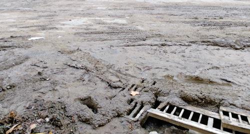 "Берут всю грязь, трактором собирают и сваливают в полуразрушенное здание поликлиники, где ранее была водолечебница. Вся эта сель вываливается назад и расползается по дороге. Нам приходится брать лопаты и все разгребать вручную, чтобы проехать и пройти к свои домам", - рассказал житель дома по улице 50 лет СССР. Виктор Зельдин.