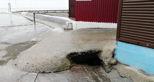 "Здесь даже не огорожено. Десятки детей ходят в школу. А вдруг ребенок провалится сюда? Да провалиться может любой, не только ребенок", -пожаловалась она.