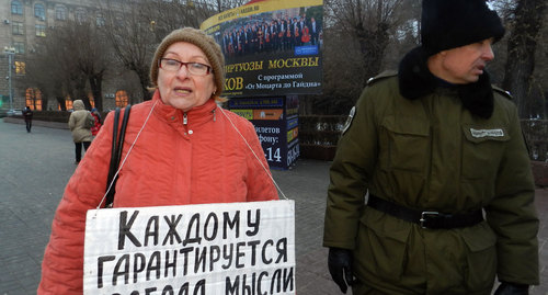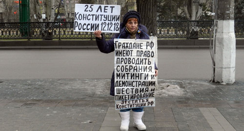 "Конституция у нас хорошая, если бы ее еще выполняли! Если говорить о материнстве, то детские пособия крайне недостаточны, о какой защите материнства можно говорить? Я также хотела написать плакат о религии, но не успела. Россия – светское государство, но в школах идет уклон в православие. Почему в православие? Почему [организуют] гонения на Свидетелей Иеговы? У нас все религии едины, все религиозные организации и объединения равны перед законом. Это 14-я статья Конституции, она нарушается. Преследование по религиозным мотивам недопустимо", - заявила пикетчица корреспонденту "Кавказского узла"
