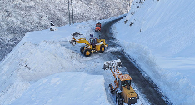 "Транскавказская магистраль, соединяющая Россию с Южной Осетией, продолжает оставаться закрытой. [...] производятся обстрел лавинных очагов и расчистка дорожного полотна. Всего к проведению работ привлекаются 63 человека и 11 единиц техники", - сообщается сегодня на сайте ГУ МЧС по Северной Осетии.