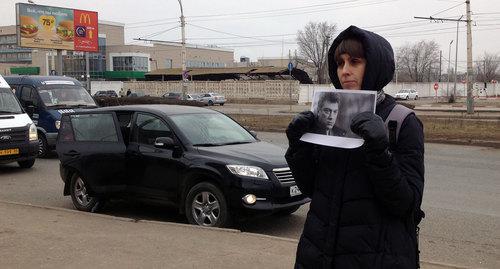 В пикете с фотографией Немцова также постояла астраханка Елена Байбекова.