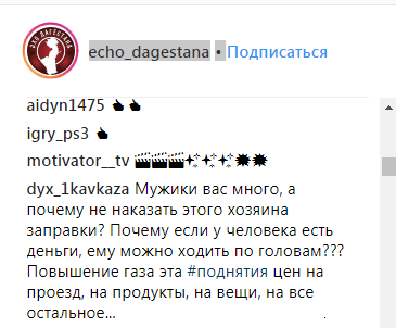 "Мужики, вас много, а почему не наказать этого хозяина заправки? Почему, если у человека есть деньги, ему можно ходить по головам???", - написал dyx_1kavkaza.