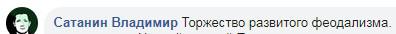 "Торжество развитого феодализма", - высказал свое мнение другой пользователь Facebook Сатанин Владимир.