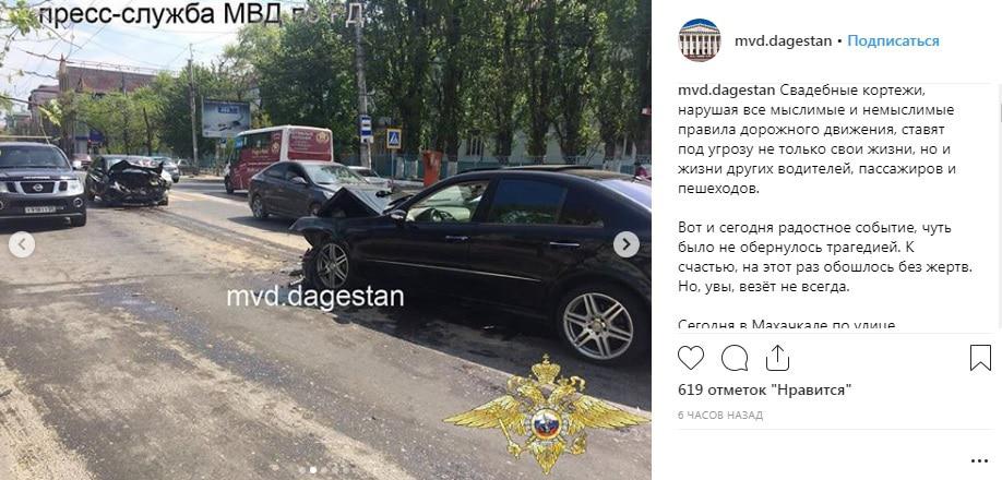 Водители свадебных кортежей в Дагестане демонстративно нарушают правила дорожного движения, провоцируя ДТП, заявило МВД после аварии в Махачкале. Полиция должна усилить контроль за передвижением свадебных кортежей и ужесточить наказание за нарушение ПДД их участниками, заявили пользователи Instagram.