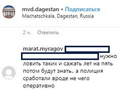 "Нужно ловить таких и сажать лет на пять, потом будут знать. А полиция сработали вроде ничего, оперативно", - написал marat.myragov.