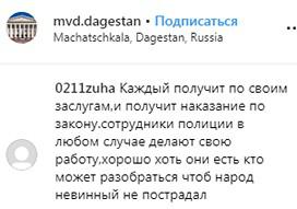 "Каждый получит по своим заслугам, и получит наказание по закону. Сотрудники полиции в любом случае делают свою работу, хорошо хоть они есть - кто может разобраться, чтоб народ невинный не пострадал", -  написал 0211zuha.