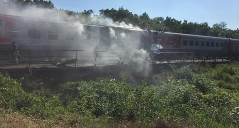 После столкновения произошло возгорание локомотива, десятого вагона поезда и грузовика, сообщило главное управление МЧС по Адыгее.
