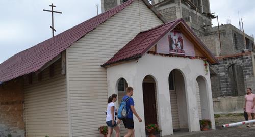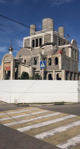 Храм уже не опечатан, он находится в стадии строительства без отделки за строительным забором. Все богослужения проходят в небольшом временном храме, который стоит рядом и является действующим, передает корреспондент "Кавказского узла" с места событий.