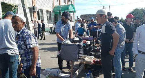 Молитва и проповедь закончились в 9.30 по местному времени (8.30 мск), после чего люди стали расходиться. К накрытому в мечети столу подошли около 20 человек. К мечети подъехала машина хлебозавода, и верующим стали раздавать хлеб бесплатно, рассказал корреспондент «Кавказского узла».