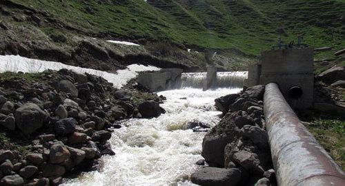 Речная вода вытекает из труб малой ГЭС в 700-800 метрах от села, рассказал корреспонденту "Кавказского узла" житель Арагаца Эдгар Геворкян.