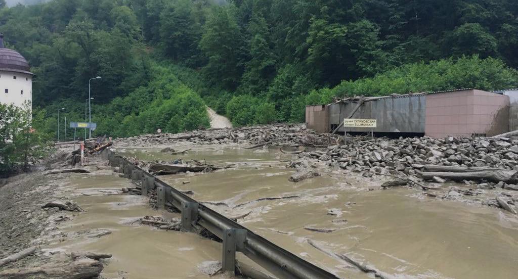 Сель в Сочи затопил канализационную станцию и дорогу
