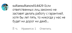 "Если ответственных лиц... не заставят делать работу с гарантией, хотя бы лет пять, то никогда у нас не будет ни дорог, ни дамб", - уверен пользователь sultansultanov014429.