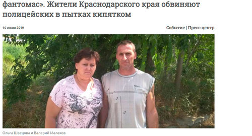 Супруги Ольга Швецова и Валерий Малахов, а также житель Кубани Артем Данилов пожаловались правозащитникам на то, что их после задержания в Гулькевичах избивали и поливали кипятком, требуя признаться в преступлениях. Ранее на пытки в этом же отделе силовой структуры жаловался местный житель Никита Хацкевич, напомнил 10 июля Комитет против пыток.