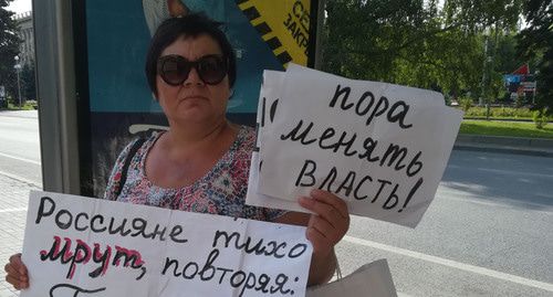 У Галины Заболотневой в руках, в частности, был плакат «Пора менять власть!». "Сами власти уже не скрывают, что смертность у нас превышает рождаемость. Раньше это можно было скрыть за счет мигрантов, но теперь нет. Люди говорят: «Путин не виноват, это на местах так работают». Но получается, на местах все плохо работают, один Путин работает хорошо? Такого же быть не может. Молодежь поддерживает меня, показывая большой палец, бабульки читают и опускают глаза", - сказала корреспонденту "Кавказского узла" Галина Заболотнева.