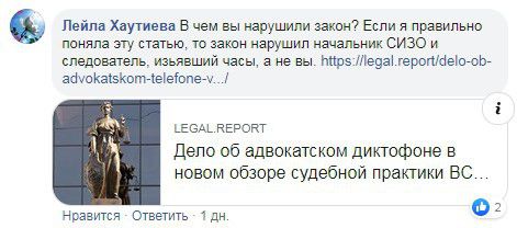 Одна из комментаторов, Лейла Хаутиева, также считает, что в действиях Аушева не было нарушения, в доказательство дает ссылку на публикацию информации из последнего обзора судебной практики Верховного суда России, касающейся "дела об адвокатском диктофоне".