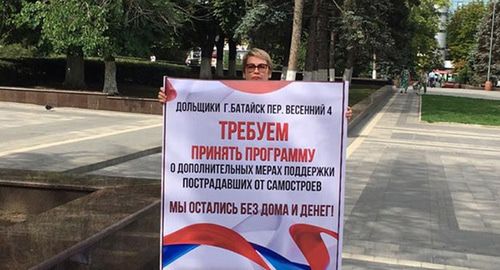 Как писал "Кавказский узел", 25 июля дольщики и жильцы домов, признанных самостроями, 25 июля провели в Ростове-на-Дону одиночные пикеты с требованием определить компанию для строительства компенсационного жилья. Власти требуют, чтобы жильцы самостроев за свой счет сносили свое единственное жилье, рассказали пикетчики.