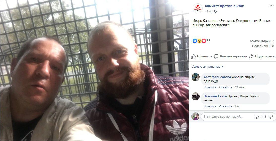 Сообщение о задержании Каляпина на странице Комитета против пыток в Facebook. Источник https://www.facebook.com/KomitetProtivPytok/posts/2025352077565384Каляпина задержали после того, как он дал небольшое интервью журналистам, говорится на странице Комитета против пыток в Facebook.