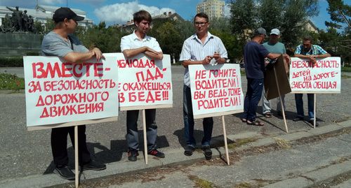 Согласованная с властями акция по проблеме детского дорожно-транспортного травматизма прошла сегодня в Волгограде. В 12.00 по местному времени (11.00 мск) несколько человек стояли вдоль проспекта Ленина и держали в руках плакаты с надписями: "Внимание. На переходах дети", "Вместе за безопасность дорожного движения", "Не гоните водители. Вы ведь тоже родители" и другими. На площади в это время собрались в основном мужчины в гражданской одежде, а также сотрудники полиции, сообщил корреспондент "Кавказского узла", присутствовавший на месте событий.