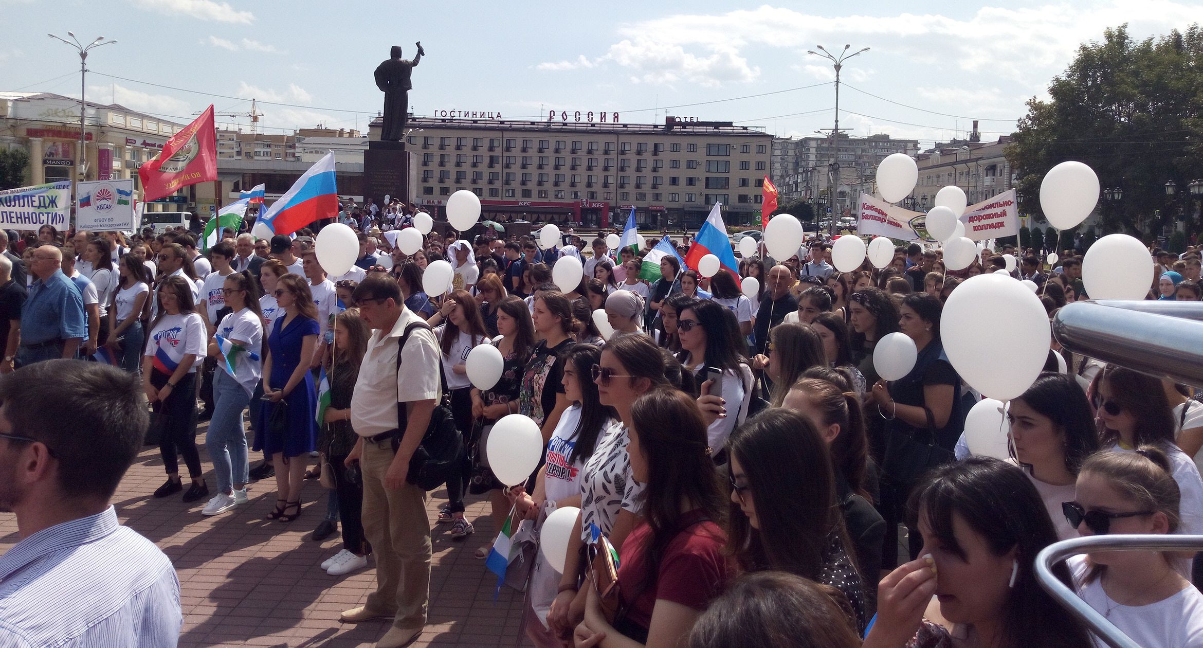 В конце митинга его участники выпустили в небо 334 белых шаров - в память о погибших бесланских заложниках.