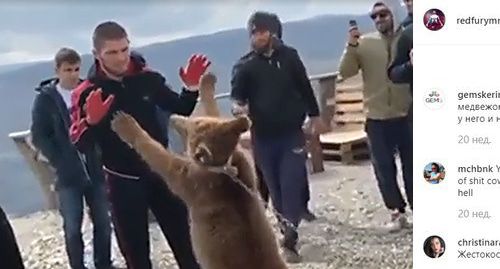 Зоозащитники потребовали наказать Хабиба Нурмагомедова за поединки с медведем