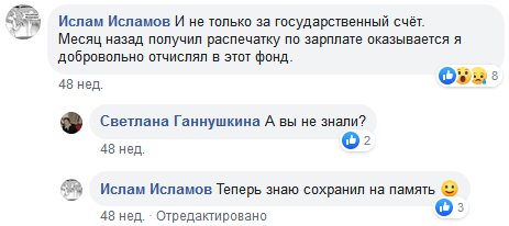 Пользователь Facebook Ислам Исламов, городом проживания которого указан Грозный, в комментарии к публикации председателя "Комитета против пыток"​ Игоря Каляпина о фонде Кадырова сообщил еще 13 октября 2018 года, что узнал о своих добровольных отчислениях в фонд из зарплатной ведомости.