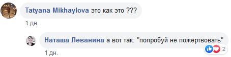 "Это как это???" – удивилась Tatyana Mikhaylova в комментарии к новости о фонде, размещенной на странице издания Znak в Facebook. "А вот так: "попробуй не пожертвовать", - ответила ей Наташа Леванина.