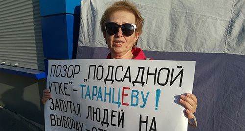 Участники акции сменяли друг друга каждые полчаса. У них были плакаты «Позор «подсадной утке» - ТаранцЕву! Запутал людей на выборах - оттянул голоса у ТаранцОва!», «Залог «победы Волоцкова» – обман избирателей! ТаранцЕв – это фейк!»
