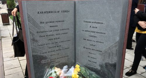 Председатель Общества книголюбов Кабардино-Балкарии Наталья Шинкарева рассказала, что изначально задумывалось установить настенную доску со стихами поэта. "Но нам разрешили больше - установить эту доску на земле", - сказала она.