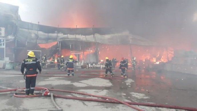 Огнем полностью уничтожено более 150 магазинов. Товары, которые удалось спасти от огня, сложены под открытым небом, торговый центр охраняют десятки сотрудников полиции, информирует издание.