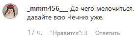 "Да чего мелочиться, давайте всю Чечню уже", - написал, в частности, _mmm456. "Меня тоже включите в санкции, я из Чечни никуда все равно не собираюсь", - предложил pirat9595.