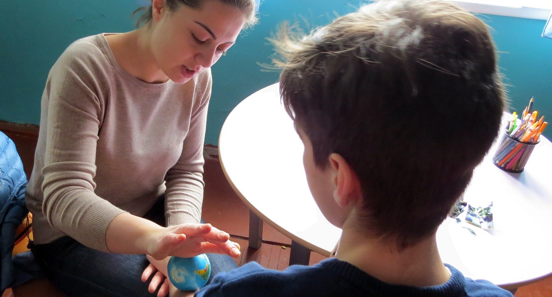 Специалист из Армении Катя Григорян рассказала корреспонденту "Кавказского узла", что уже несколько месяцев работает в "Еларане", куда была приглашена для проведения тренингов, главным образом в области музыкальной терапии и эвритмии.