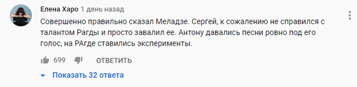 "Сергей, к сожалению, не справился с талантом Рагды и просто завалил ее. Антону давались песни ровно под его голос, на Рагде ставились эксперименты", - считает Елена Харо.