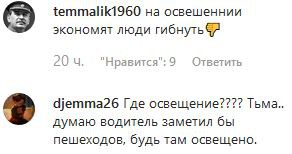 "Где освещение???? Тьма... думаю, водитель заметил бы пешеходов, будь там освещено", - согласился djemma26. "Правительство [...] ничего не делает, все дороги должны быть освещены, тем более пешеходный переход", - написал mailrush___03.11.89.