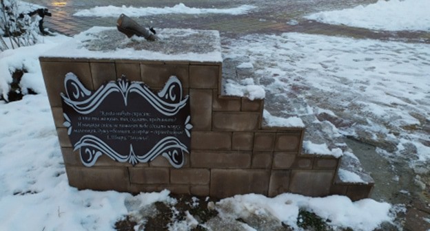 Сообщение о том, что в центре Майкопа "будет открыт постамент "Золушкина туфелька", посвященный творчеству Евгения Шварца, жившего в Майкопе, поступило на sms-сервис "Кавказского узла" 11 декабря 2019 года.
