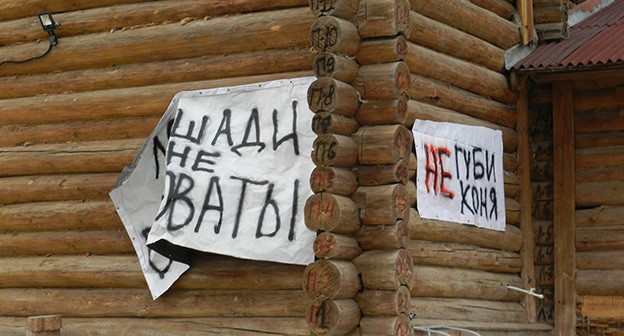 Около КСК собрались также владельцы лошадей, волонтеры и неравнодушные горожане, рассказала корреспонденту "Кавказского узла" волонтер клуба Ксения. По ее словам, накануне на заборе у клуба появились подготовленные добровольцами плакаты "Лошади – лучшие друзья людей. Спасите лошадей!", "SOS!", "У лошадей должен быть дом!" и другие.