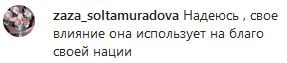 "Гордость Чечни, молодец", - написала anechka334. "Надеюсь, свое влияние она использует на благо своей нации", - поделилась мнением zaza_soltamuradova. "Это не последняя должность, которую мы будем занимать [...] Во всех европейских странах учится и развивается наша молодежь!" – написал tchetchen2019.