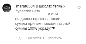"В школах теплых туалетов нет... а они стадионы строят на такие суммы", - написал пользователь marat0584.