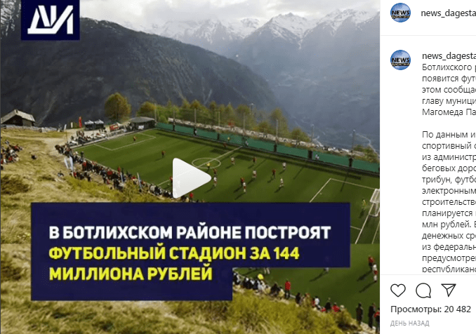 Новость о строительстве стадиона была опубликована 22 февраля в соцсети Instagram, в сообществе news_dagestana, насчитывающем 194 тысячи подписчиков. По данным на 7.20 мск сегодня она набрала более 20,4 тысячи просмотров и 94 комментария.